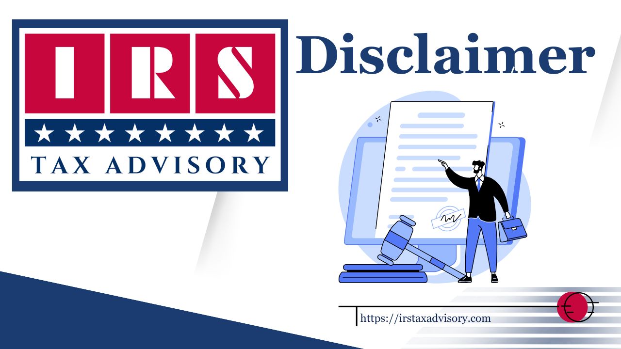 - Company (referred to as either “the Company”, “We”, “Us” or “Our” in this Disclaimer) refers to IRS Tax Advisory.